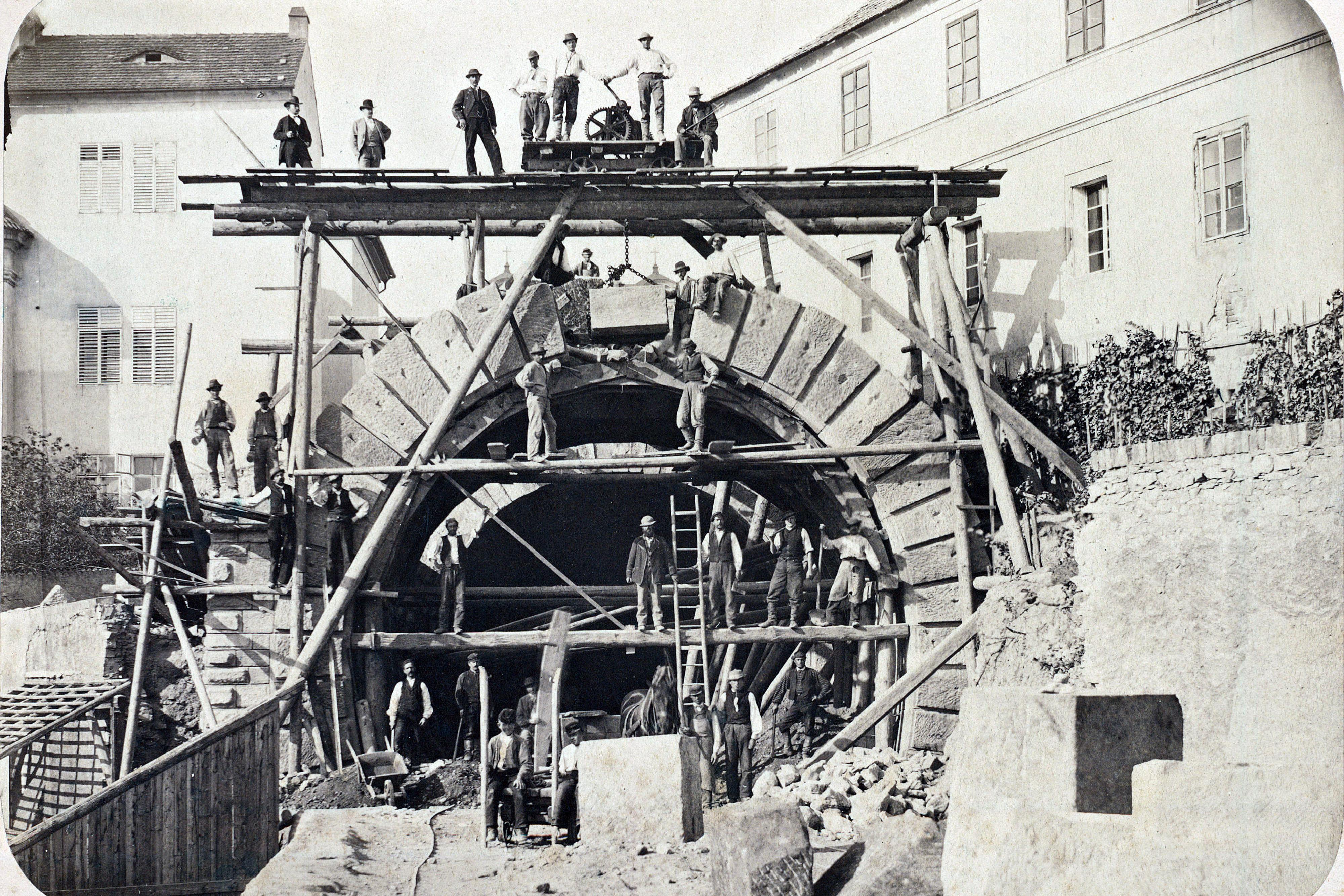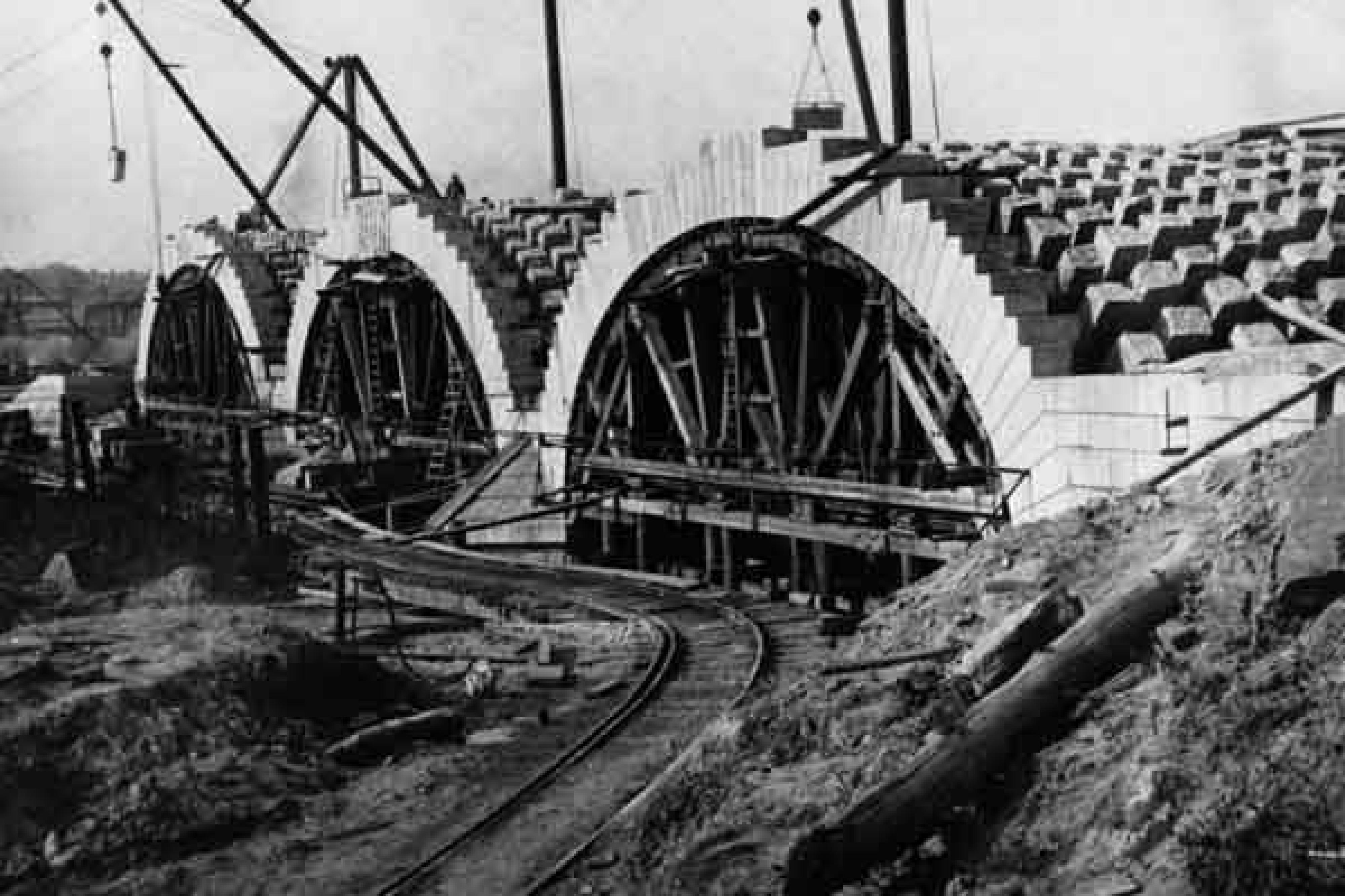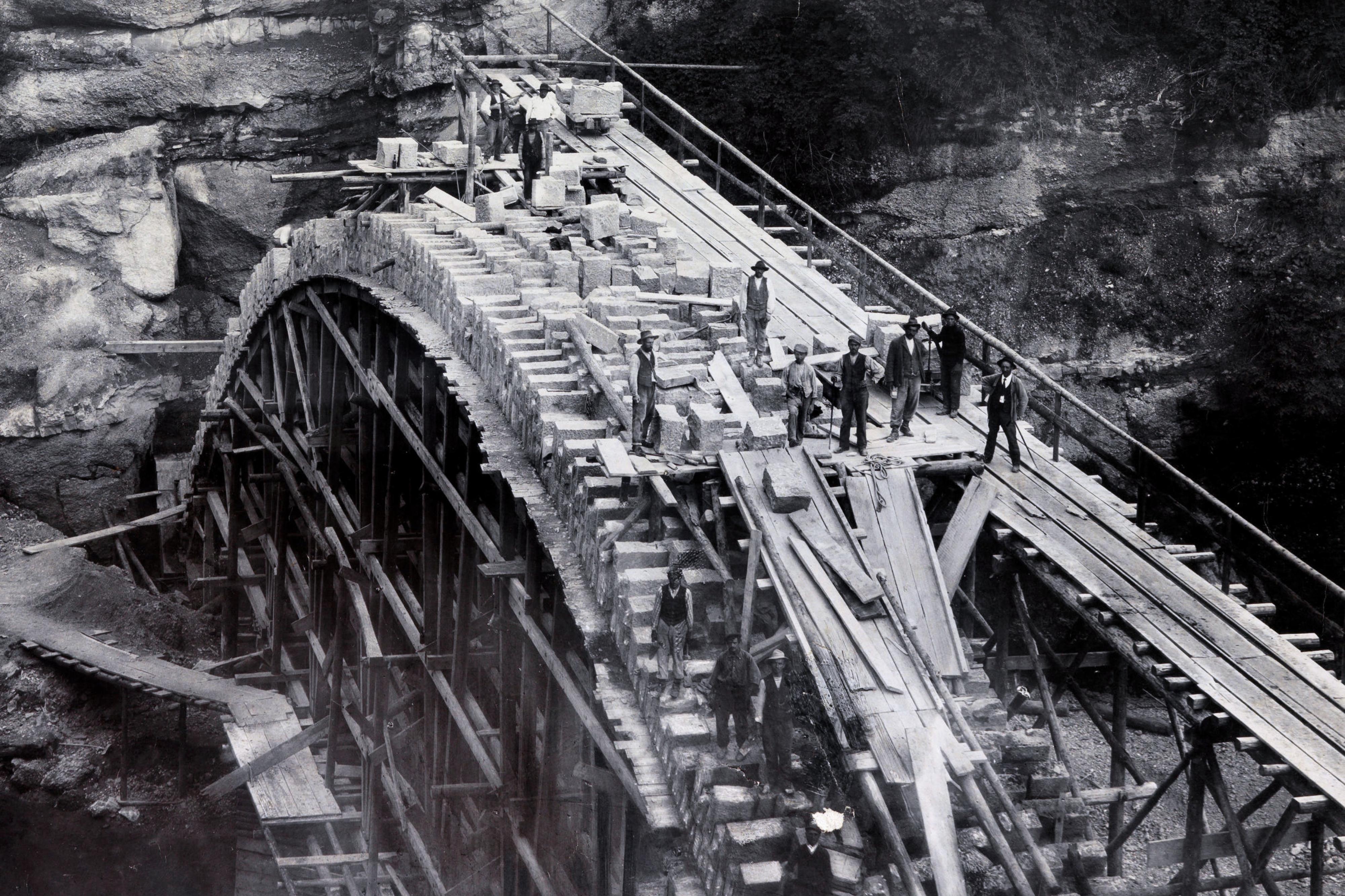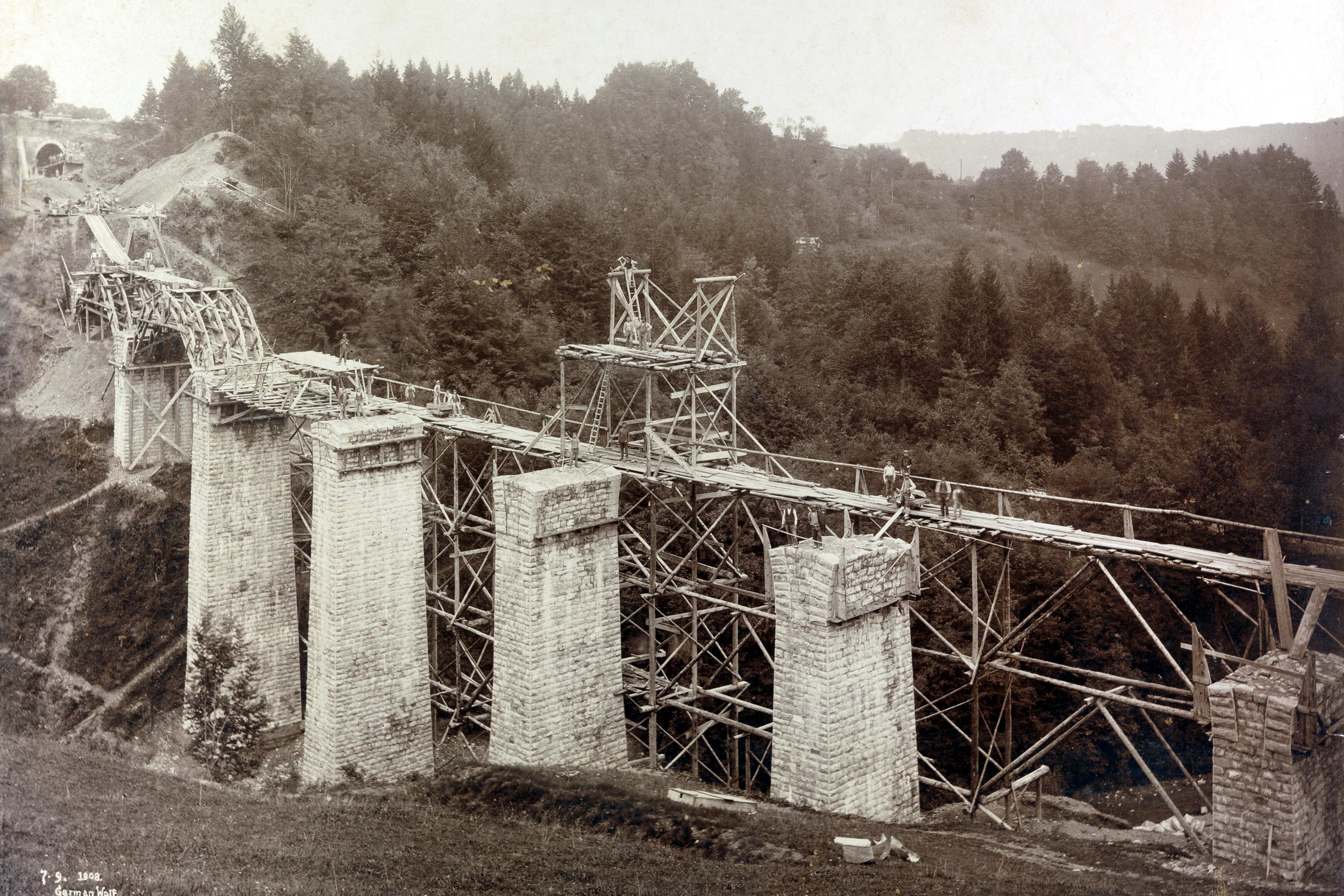 Construction of a railway viaduct in Uerikon, Switzerland, 1894