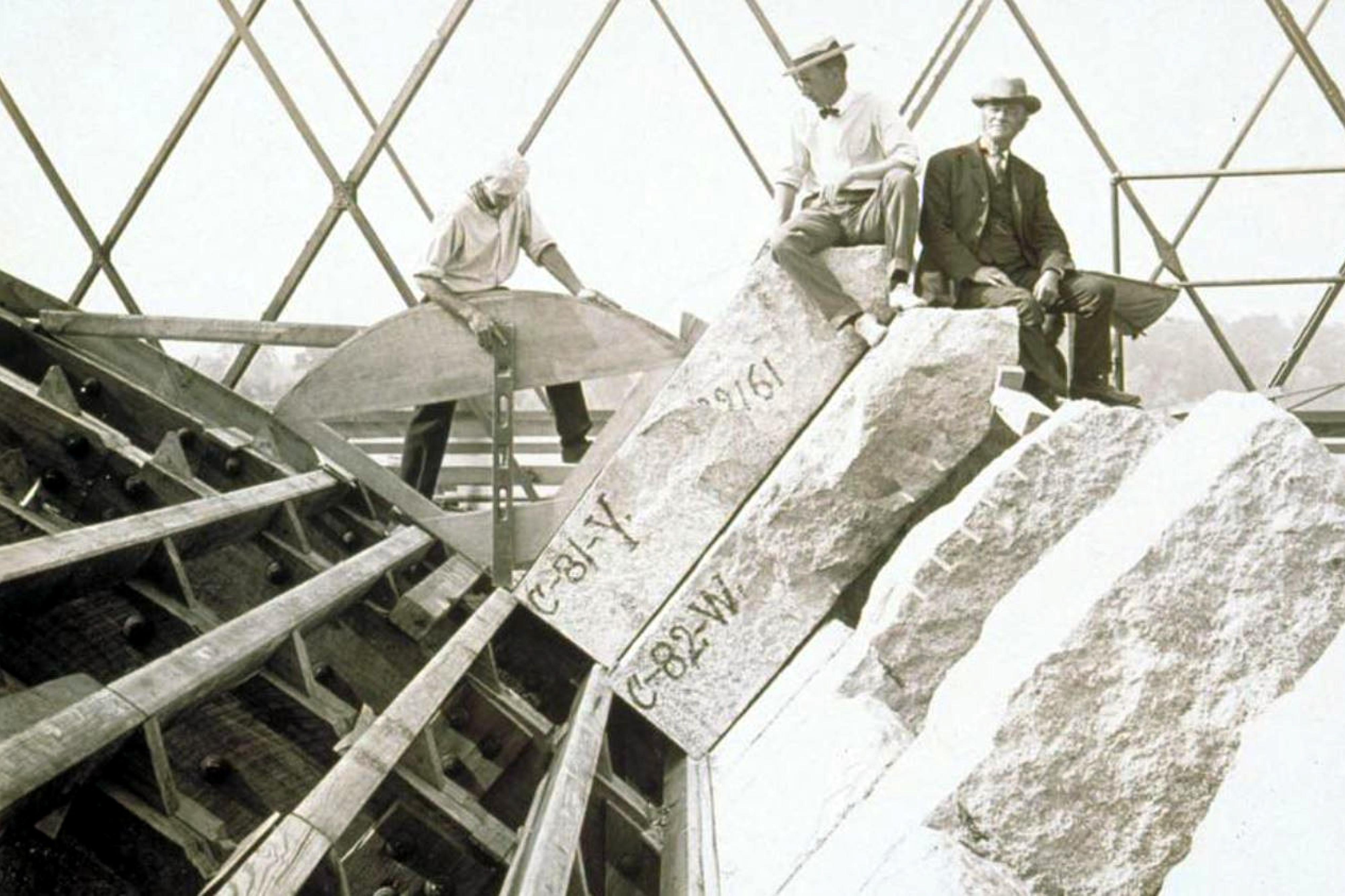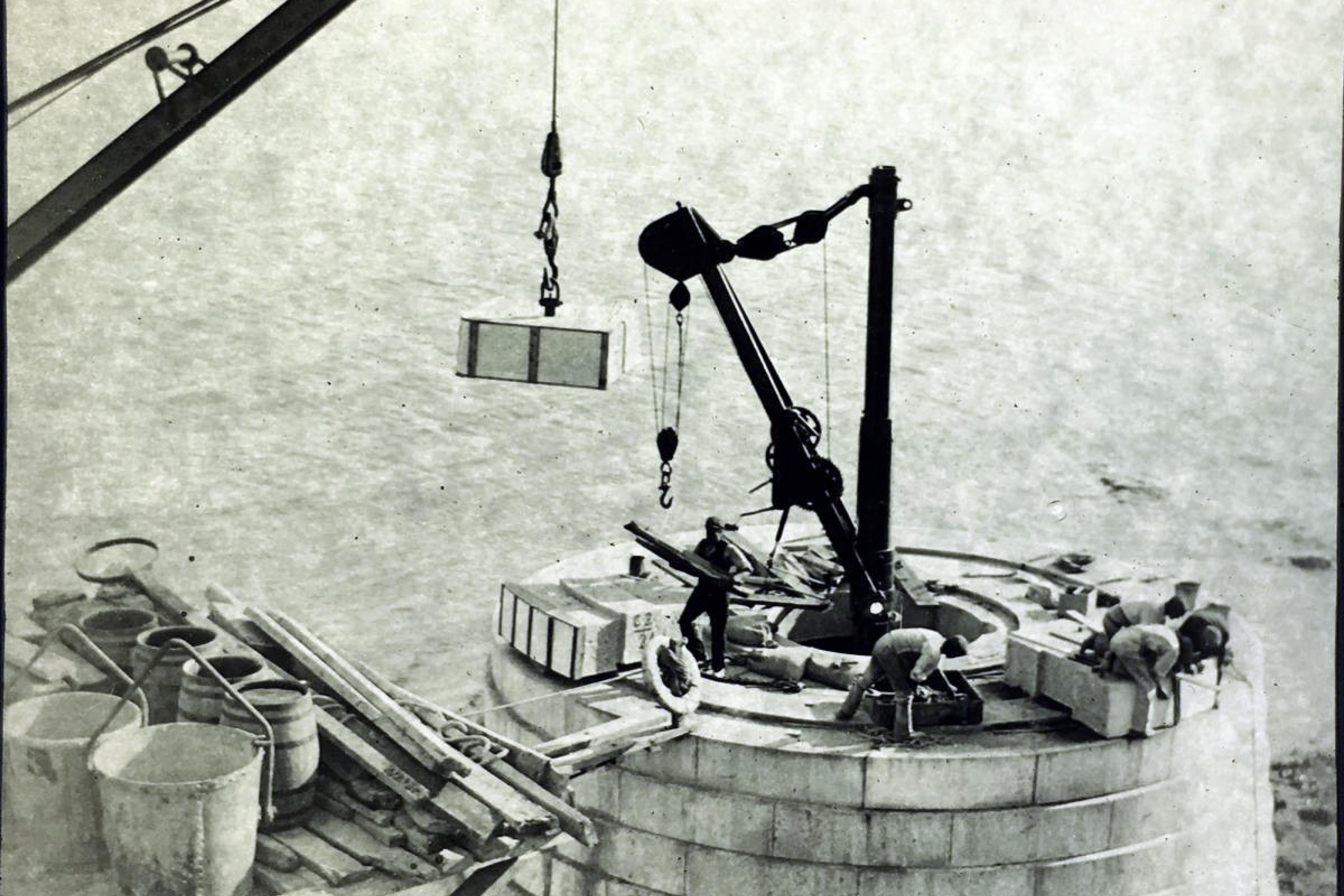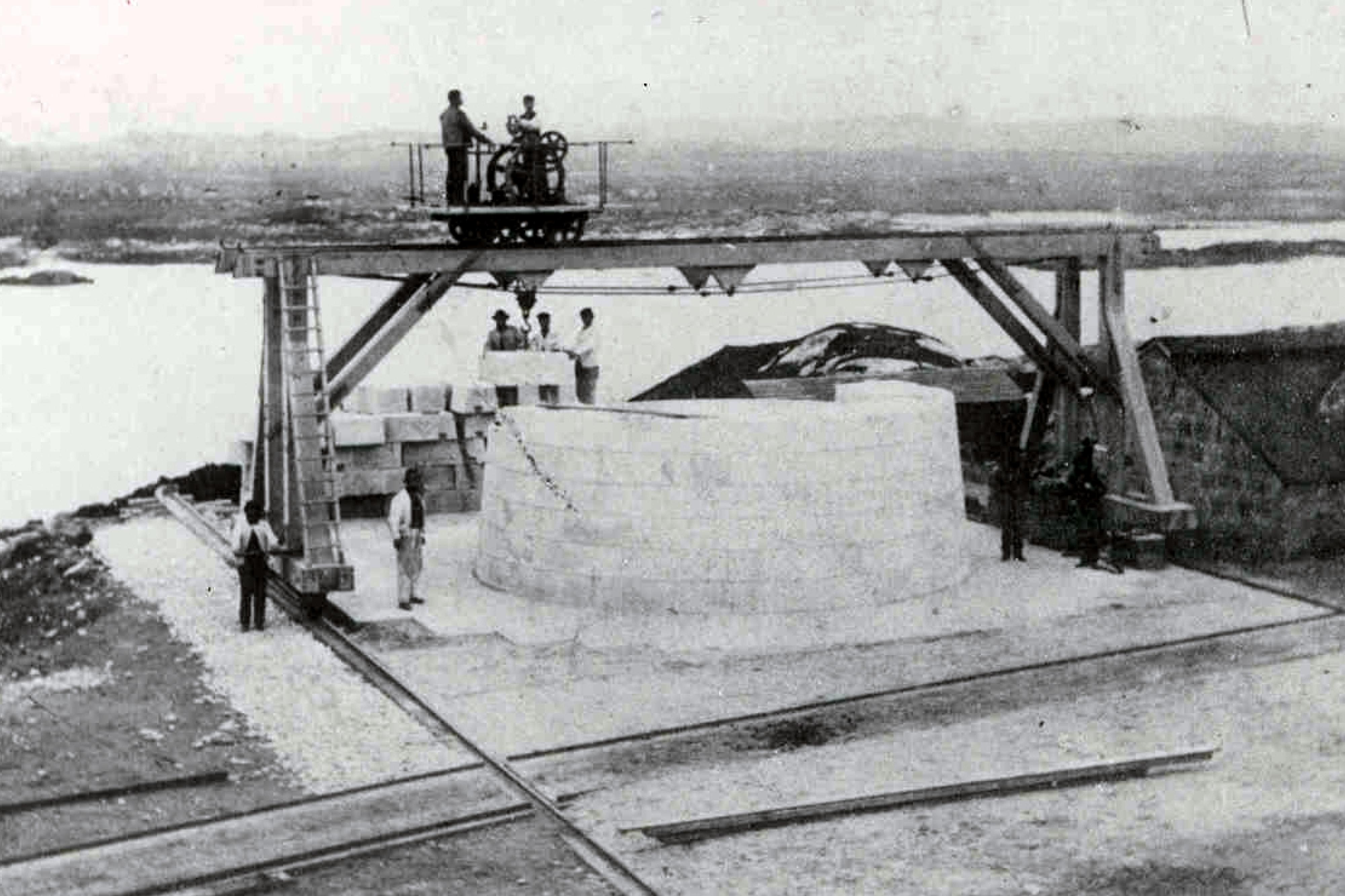 The production of the granite blocks with dovetail joints by stone masons was a major achievement. The finished stone blocks were preassembled on land to check the fit. The masonry was then taken apart and transported by ship to the construction site.