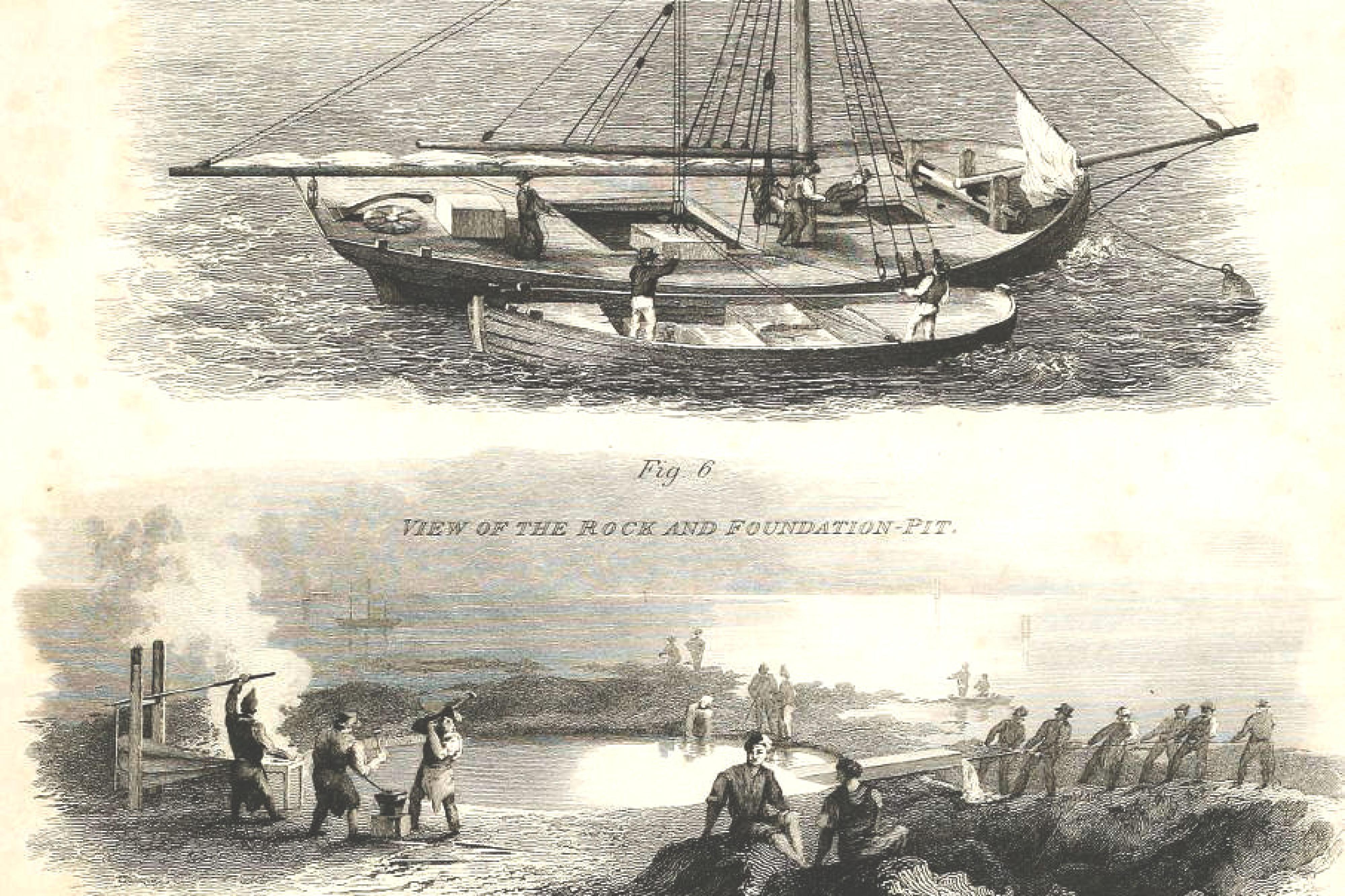 Francis Watt, Foreman and millwright who made the development and construction of various technical facilities for the construction of lighthouses possible. He developed a railroad that made it possible to transport the stone blocks from the landing stage to the tower construction site (and later influenced the development of the railroad on land) and various lifting devices that made it possible to lift and precisely move the stone blocks.