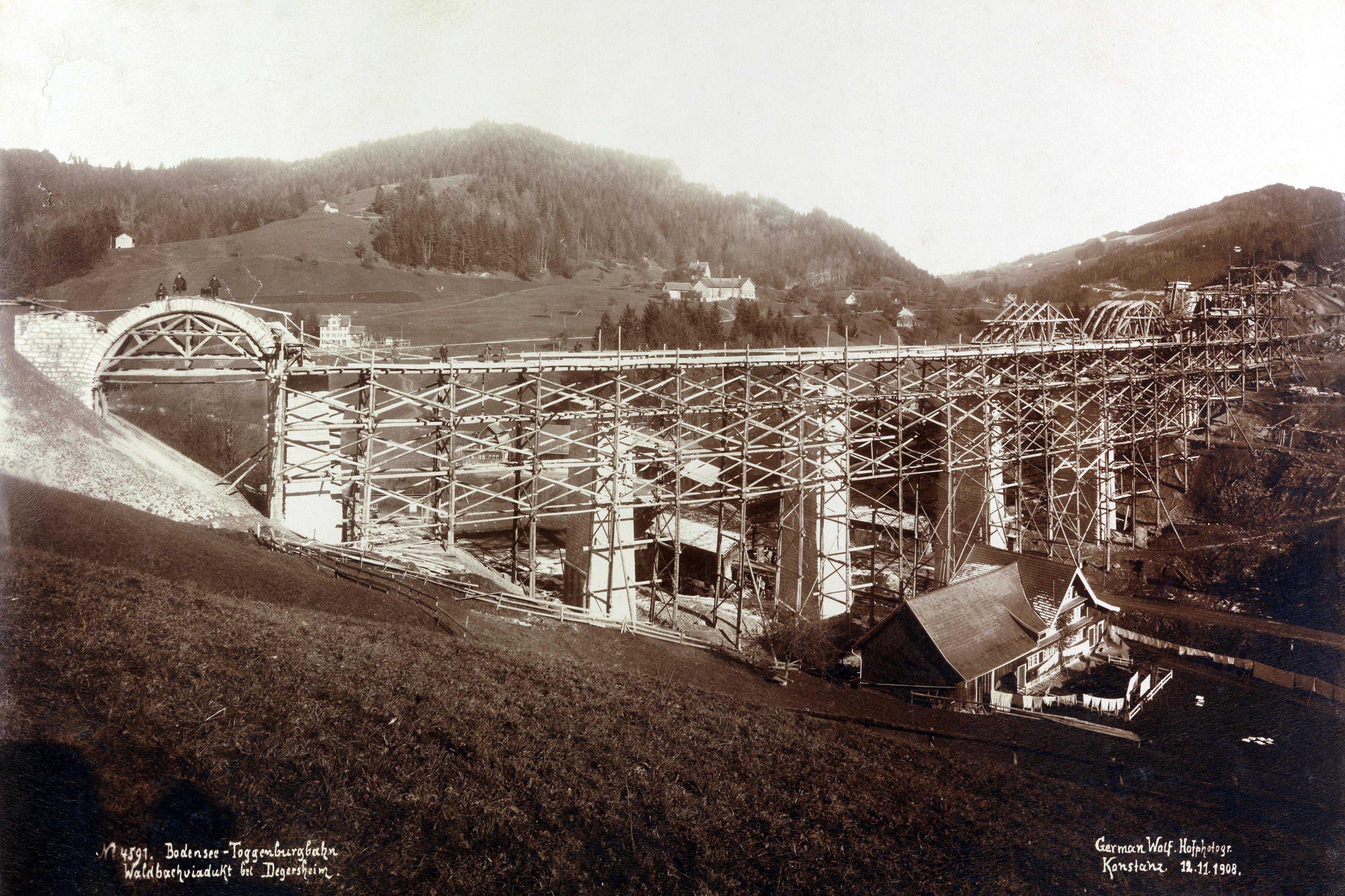 Construction of the railway line Bodensee - Toggenburg in Switzerland, 1903