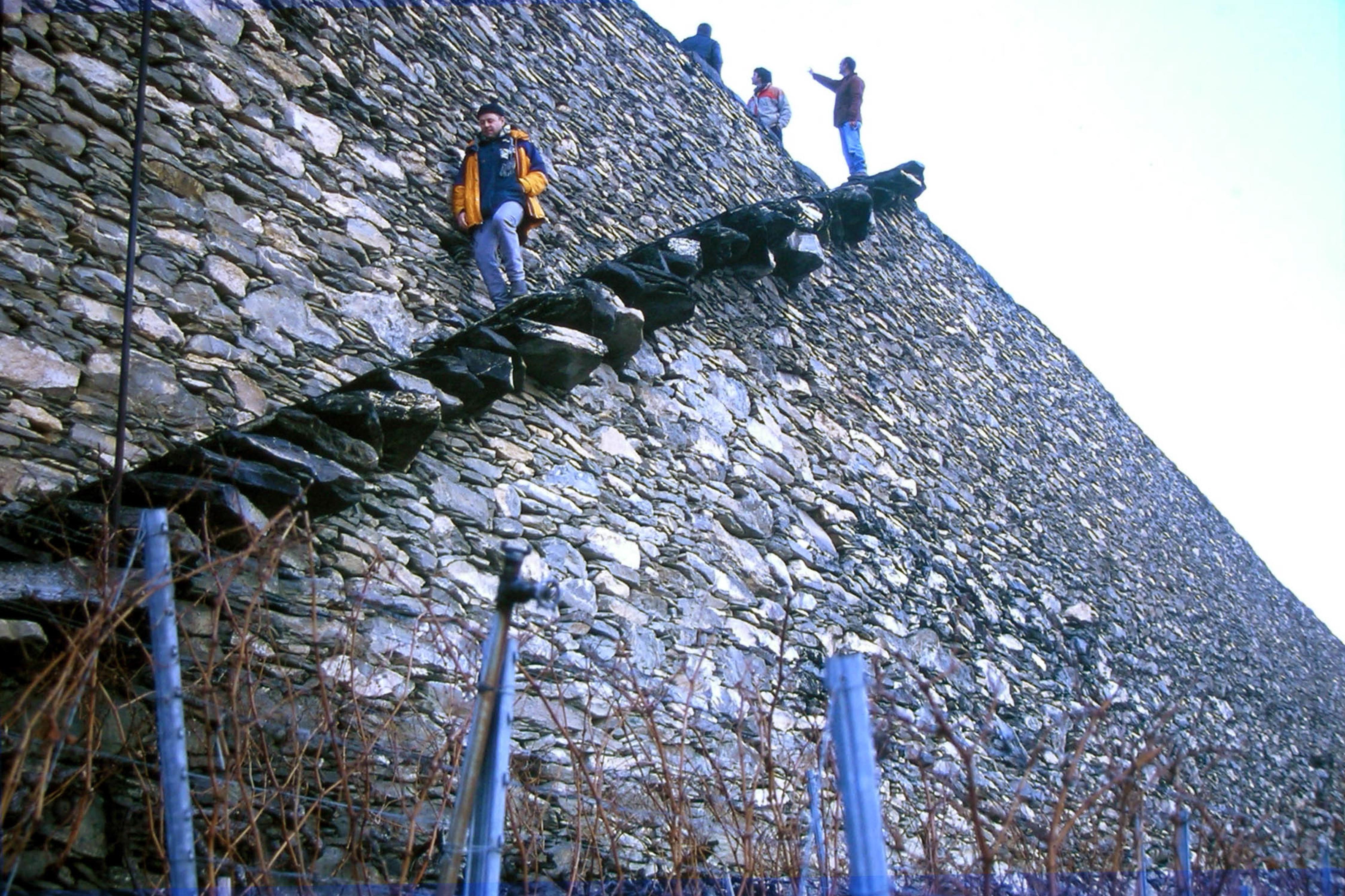 Die steinmetzmmässige Bearbeitung der Granitblöcke mit Schwalbenschwanzverbindungen war eine grosse Leistung. Die fertigen Steinquader wurden an Land zusammengesetzt um die Passform zu prüfen. anschliessend wurde das Mauerwerk wieder auseinandergenommen und mit Booten auf die Baustelle transportiert.