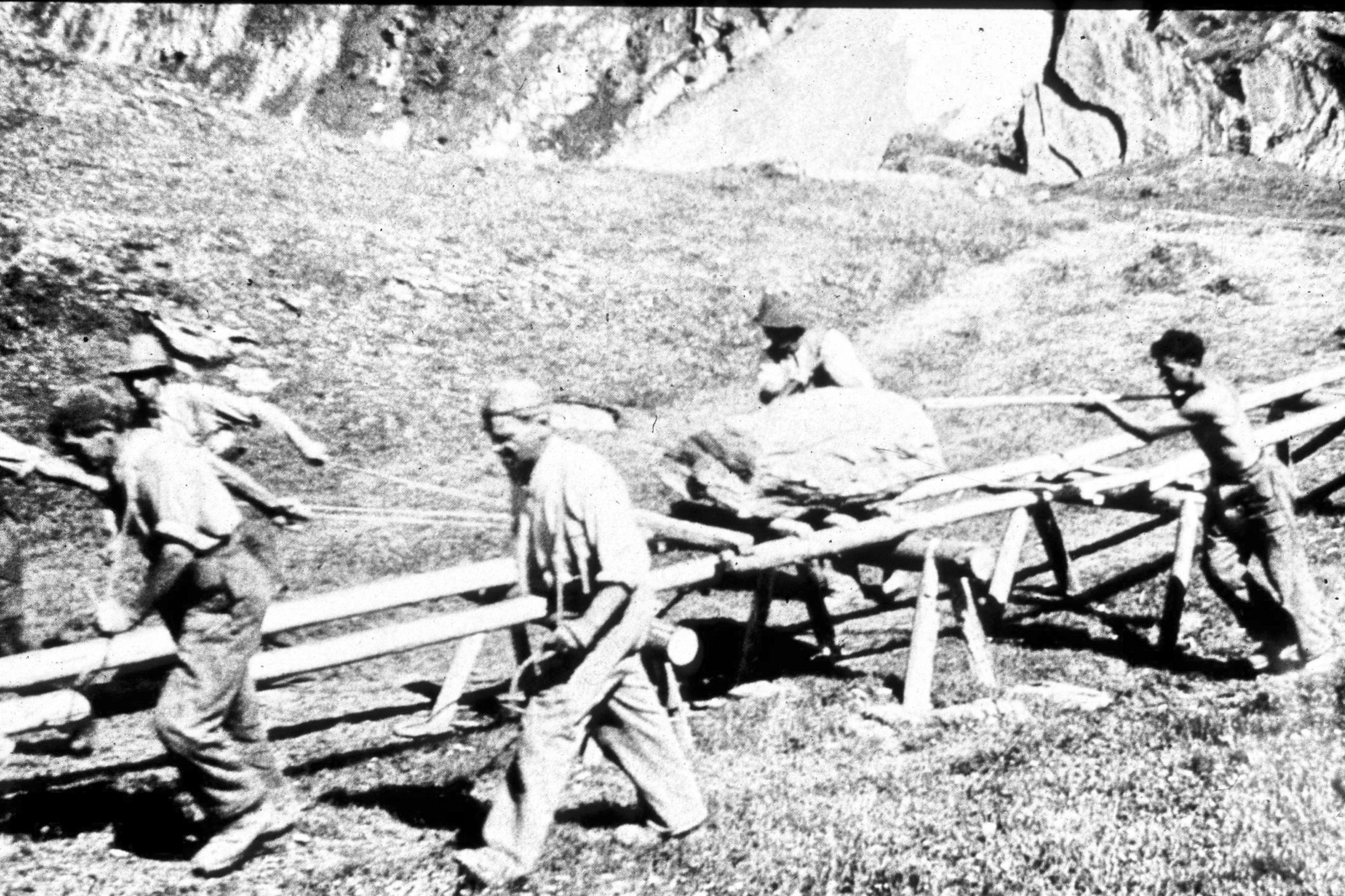 Bau einer Lawinenverbauung in Gurtnellen 1953