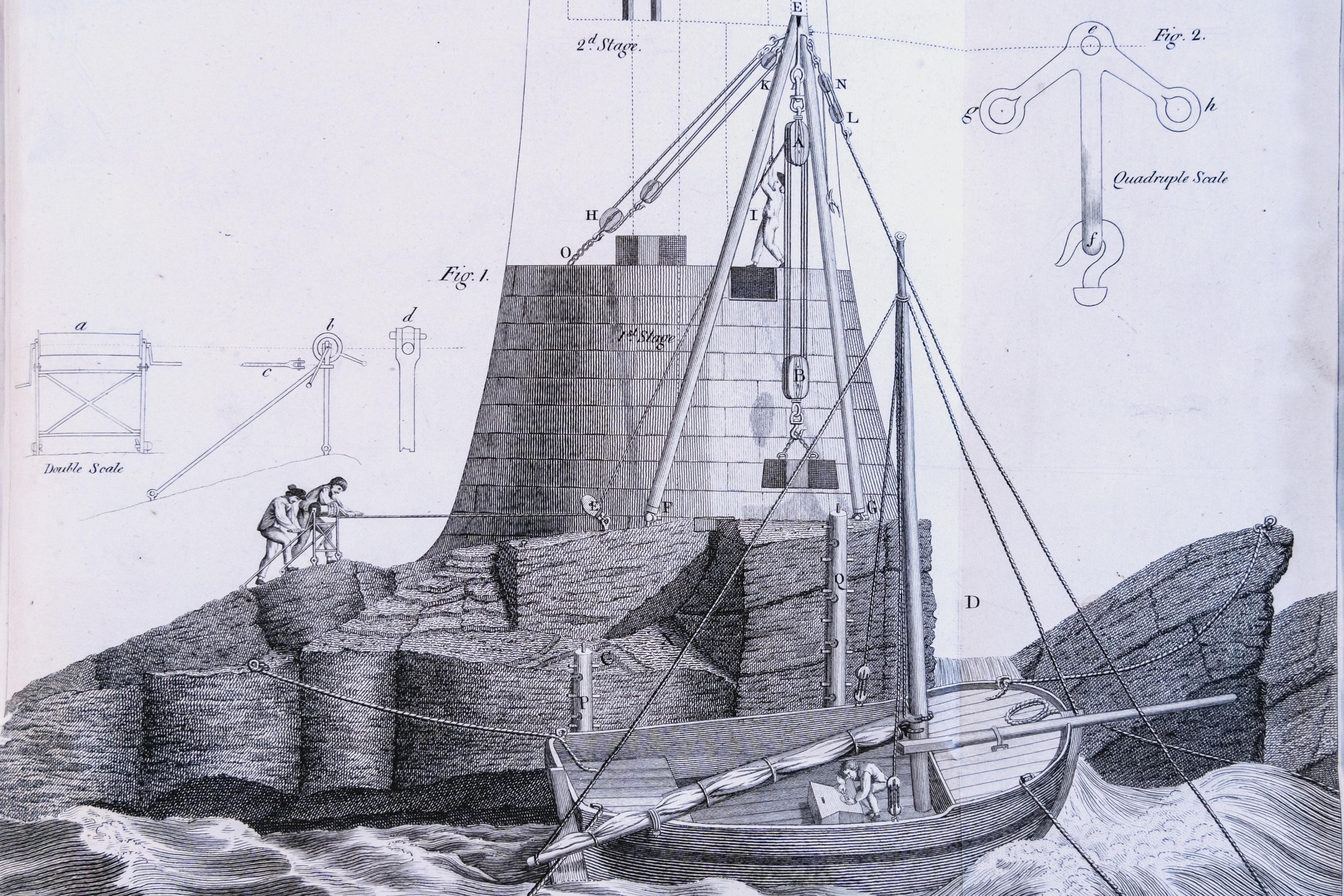 Robert Stevenson war für den Entwurf und die Überwachung von mehr als 25 Leuchttürmen verantwortlich, darunter dem Bell Rock Leuchtturm im Jahr 1811. Die Bauwerke mussten nicht nur so konzipiert werden, dass sie den großen Naturgewalten - Wellen, Strömungen und Wind - standhalten konnten, sondern der Konstrukteur musste auch die Bauweise und die Hebeanlagen usw. entwerfen, die für den Bau eines Monolithen erforderlich waren, der in der Regel auf einem Felsen mitten im Ozean und manchmal weit vor der Küste stand.