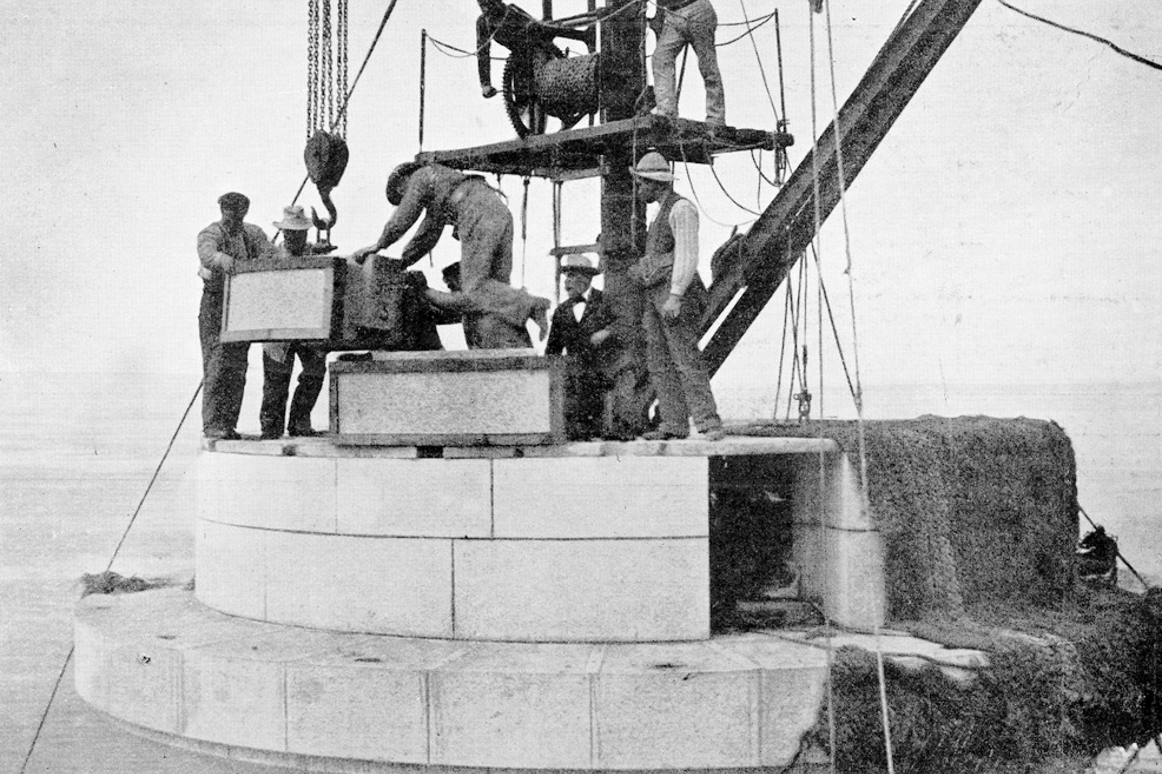 Der erste Leuchtturm aus ineinandergreifenden Mauerblöcken wurde 1759 auf dem Riff Eddystone Rocks vor Plymouth, England, errichtet. Die ineinandergreifenden Mauerblöcke blieben das wichtigste Material für den Bau von Leuchttürmen, bis sie im 20. Jahrhundert von der Stahlbetonbauweise abgelöst wurde. Der Bau der Leuchttürme führte zu zahlreichen technischen Neuerungen. So wurden neue Krane entwickelt, Eisenbahnen für das Verschieben der Steinblöcke und neue Mörtelzusammensetzungen.